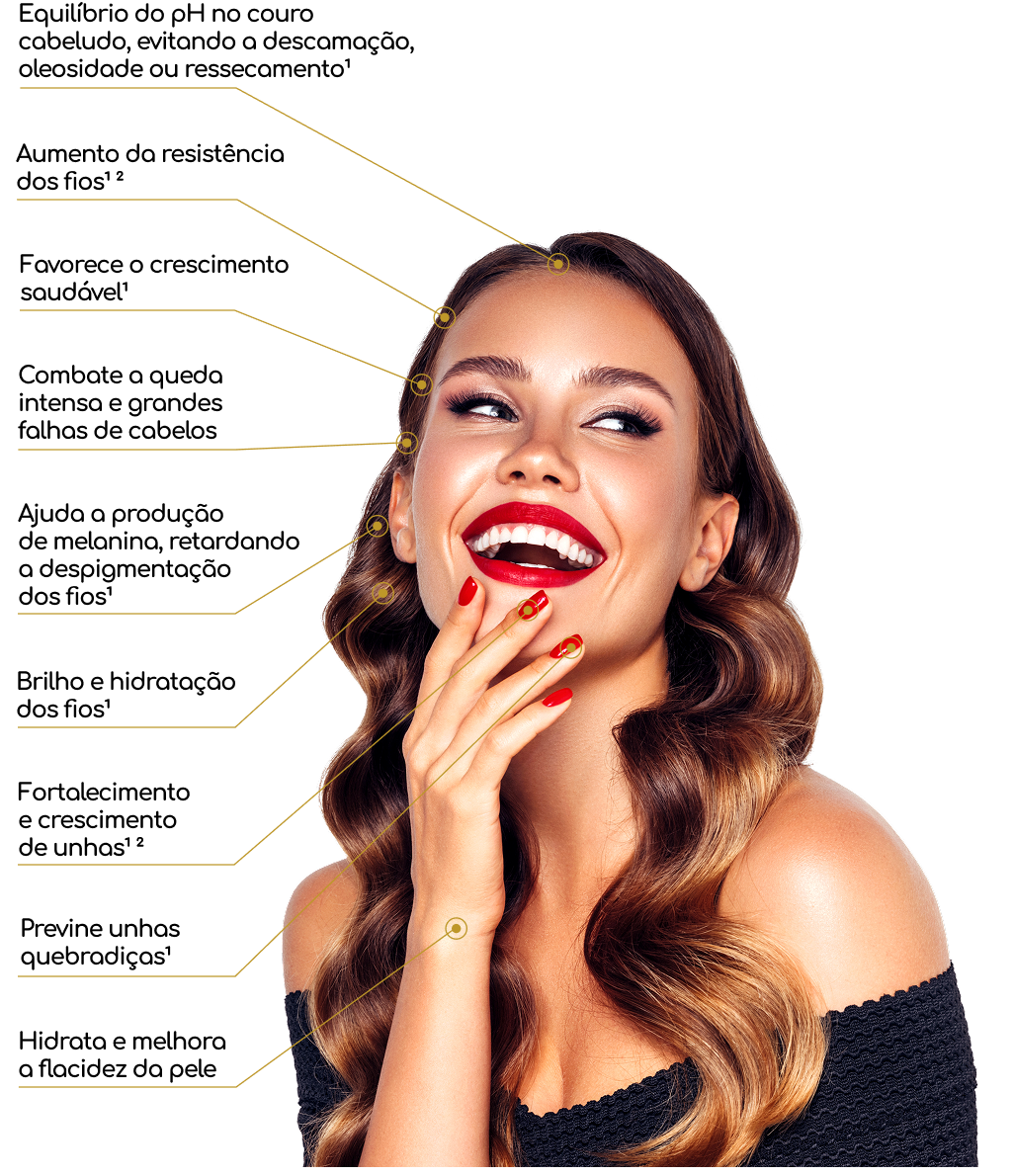 Para garantir vitalidade e saúde, com Tacitá o cabelo têm uma melhora da ancoragem, resistência, aumento do volume dos fios e as unhas ficam mais fortes. Ideal para manter saudáveis as unhas e os cabelos.